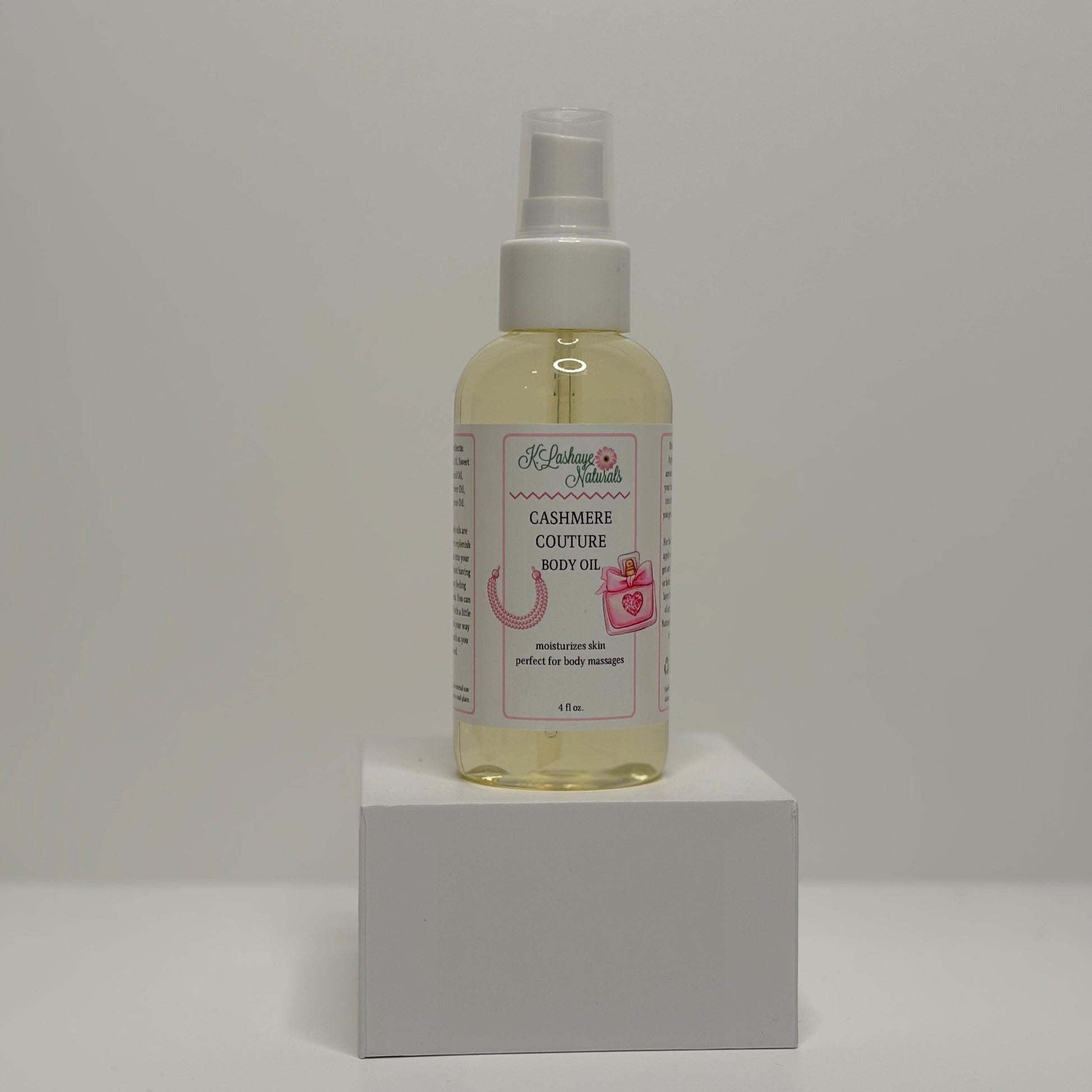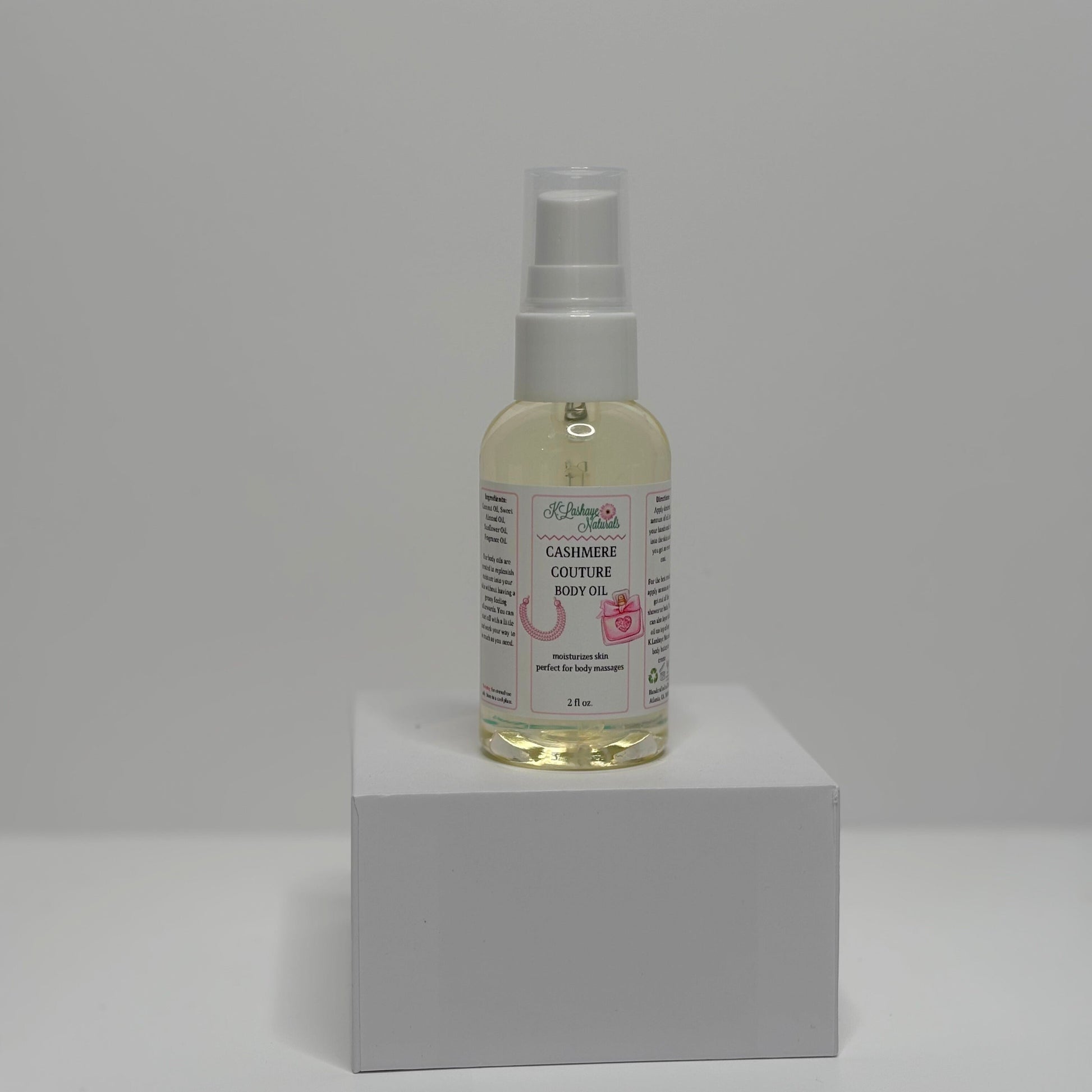Our Cashmere Couture Body Oil is a luxurious blend of natural ingredients, designed to leave your skin feeling moisturized and nourished. It's packed with sunflower oil to hydrate your skin and provide antioxidant protection from environmental stressors. It's lightweight and absorbs quickly, with no greasy residue left behind.