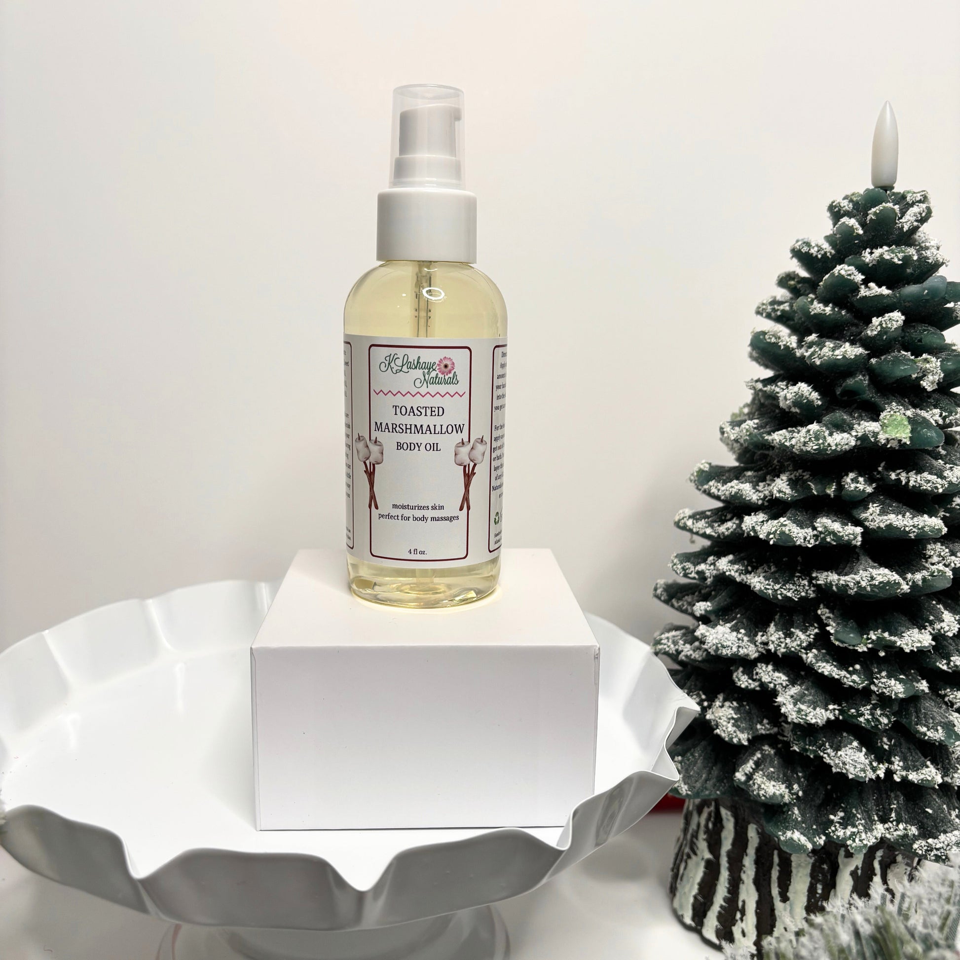 Our Toasted Marshmallow Body Oil is a luxurious blend of natural ingredients, designed to leave your skin feeling moisturized and nourished. It's packed with sunflower oil to hydrate your skin and provide antioxidant protection from environmental stressors. It's lightweight and absorbs quickly, with no greasy residue left behind.