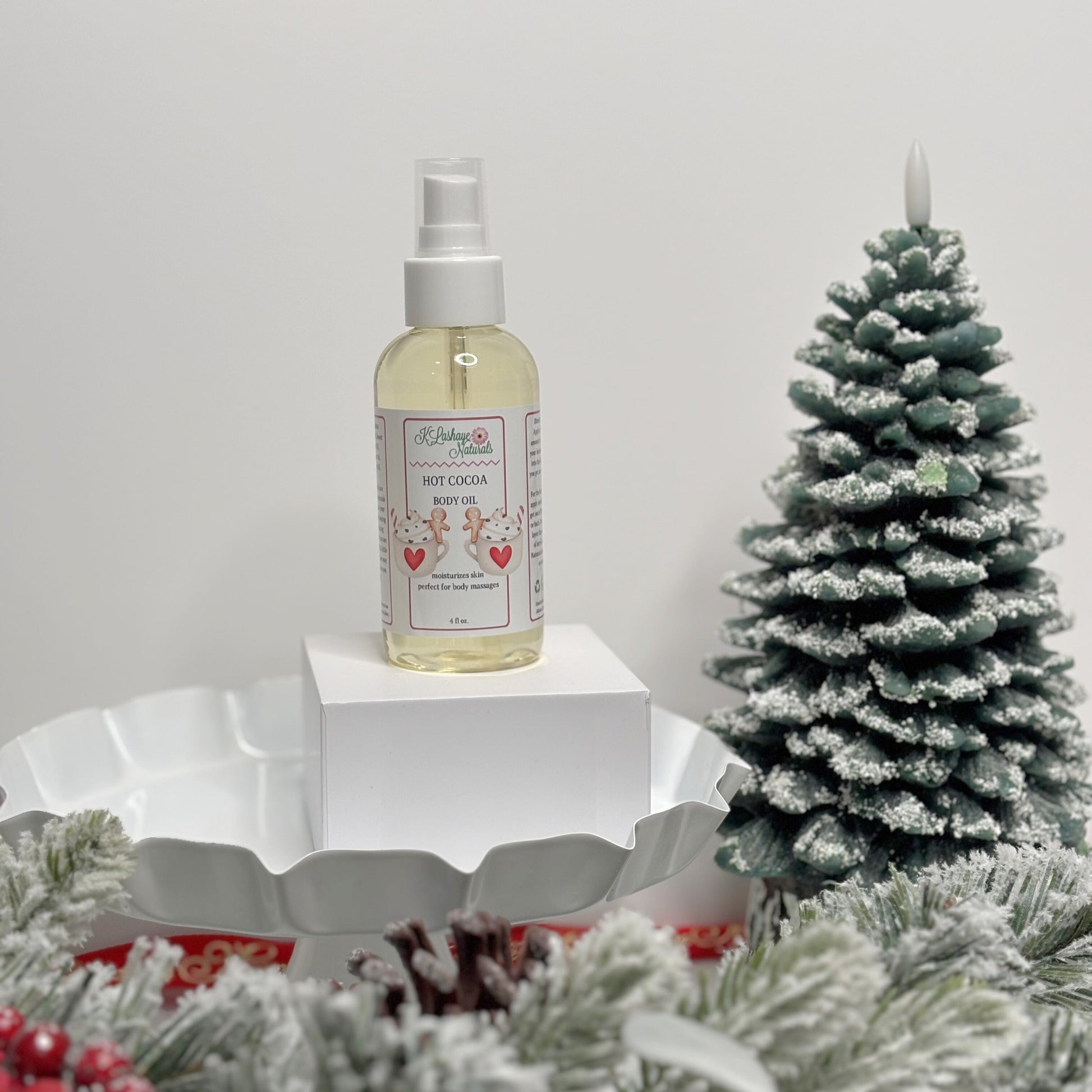 Our Hot Cocoa Body Oil is a luxurious blend of natural ingredients, designed to leave your skin feeling moisturized and nourished. It's packed with sunflower oil to hydrate your skin and provide antioxidant protection from environmental stressors. It's lightweight and absorbs quickly, with no greasy residue left behind.