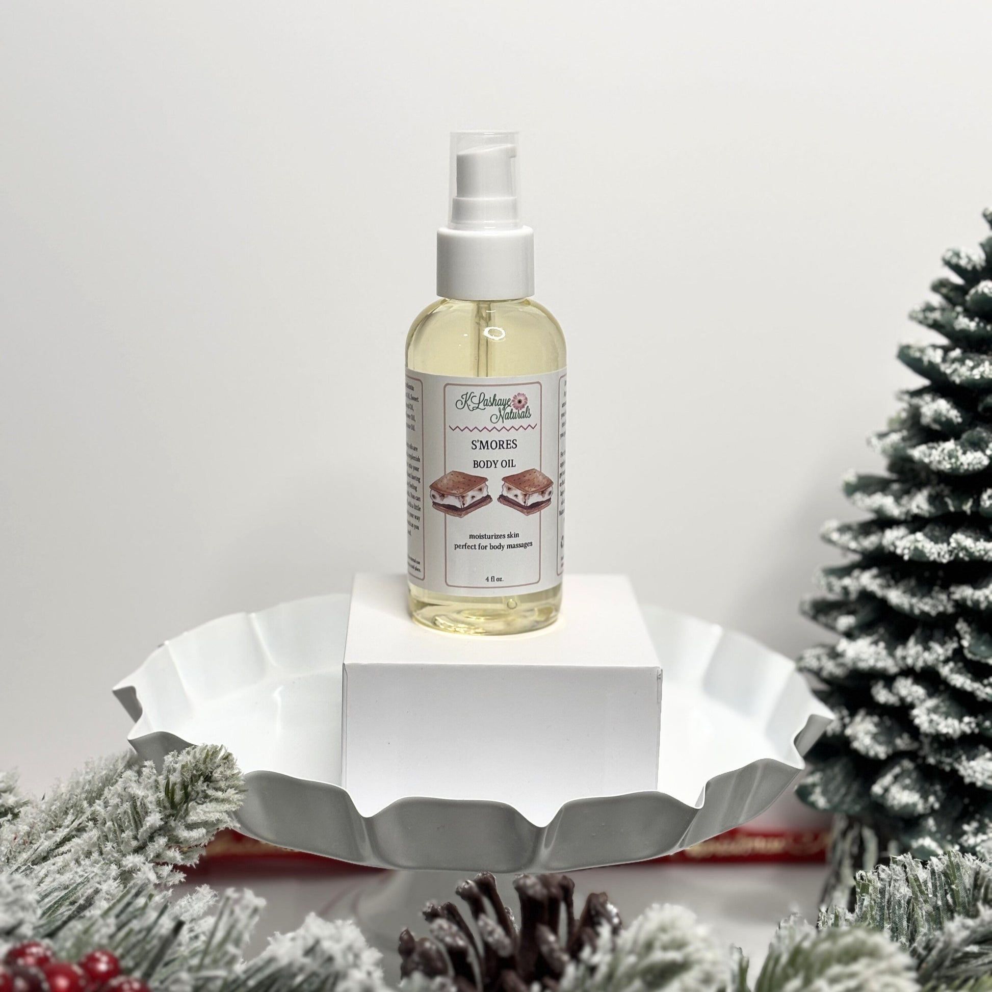 Our S'mores Body Oil is a luxurious blend of natural ingredients, designed to leave your skin feeling moisturized and nourished. It's packed with sunflower oil to hydrate your skin and provide antioxidant protection from environmental stressors. It's lightweight and absorbs quickly, with no greasy residue left behind.